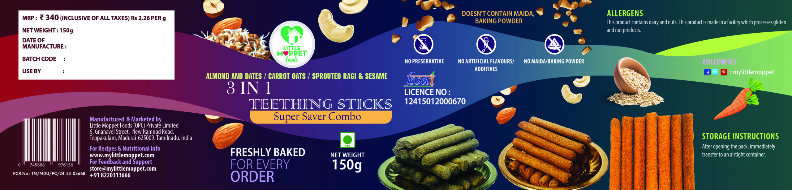 So now your kids have an assortment of teething sticks they can choose from every day. What’s more, these sticks are all made with high-quality ingredients like whole grains, nuts and lentils, making these rich in fiber, protein and healthy fats. We do not use refined flour, sugar, baking powder or baking soda. These are also free from added preservative’s and added flavors of any kind, so what you get is a Trial combo of taste and wholesome goodness!
