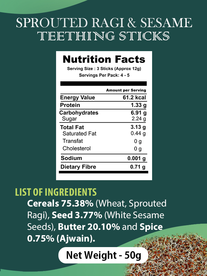 - Sprouted Ragi and Sesame Teething sticks – They are packed with protein that is essential for normal development.