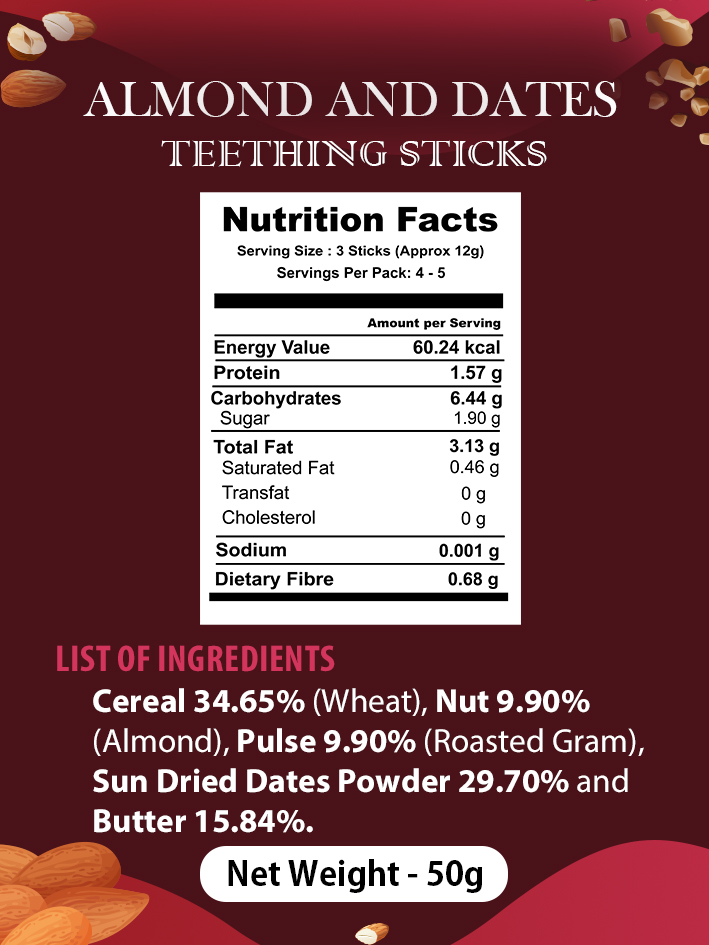 - Almond and Dates Teething Sticks -The sticks are packed with protein that is essential for normal development in babies.