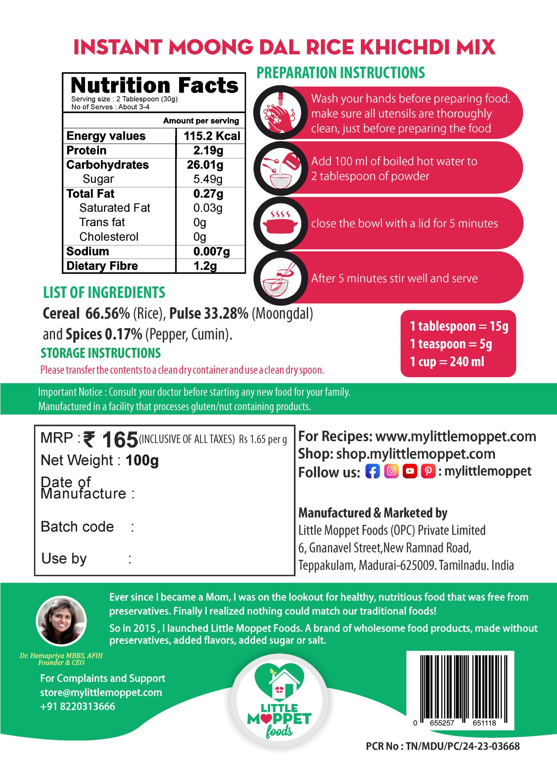 - Our Instant Rice Khichdi with Moongdal gives your child a wholesome meal.