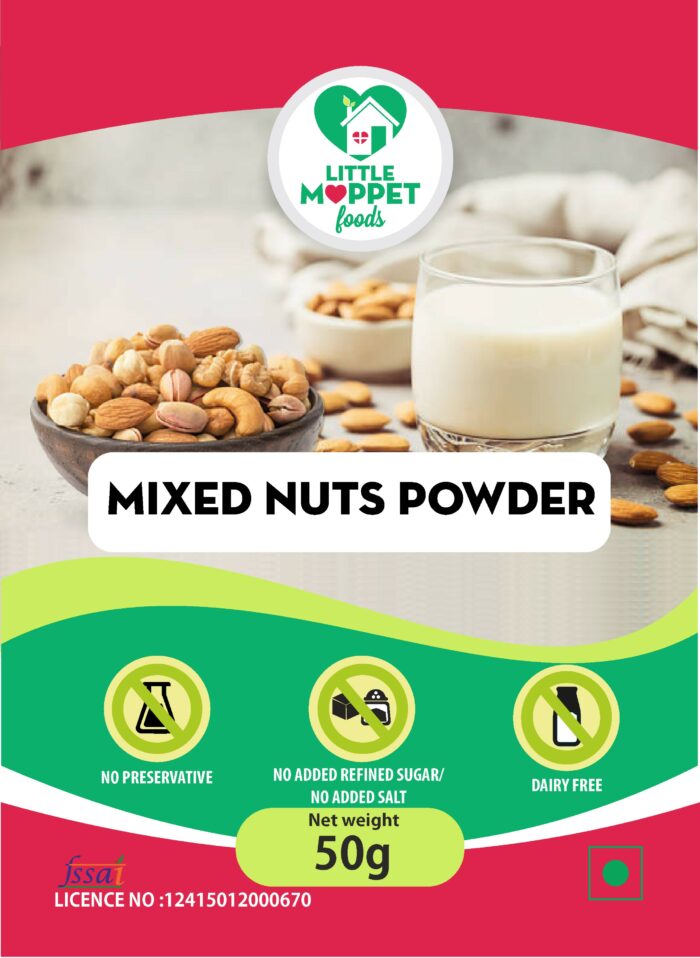 Thank you my little moppet for this mixed nuts powder.it is very helpful for my daughter that she get different nuts in a single mix .I added this with milk and she have it tastly